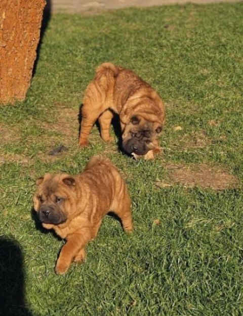 Čistokrvni Šar Pej (Shar Pei) štenci,crvena (mahagoni) i plava(siva)krvna linija, starosti 4 meseca, spremni za preuzimanje. Očišćeni od parazita, uredno vakcinisani, pod stalnim nadzorom veterinara-urađen eye taping.