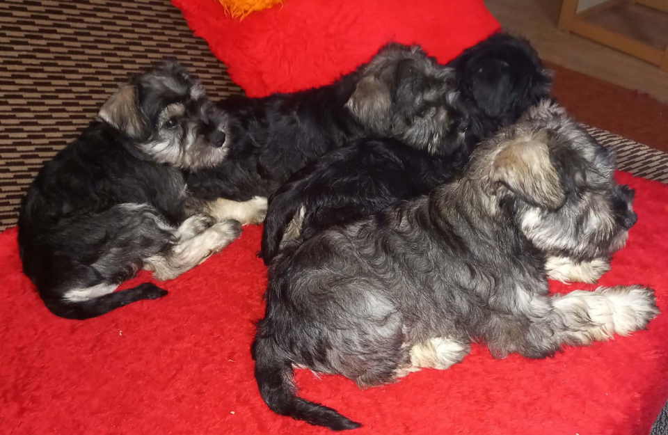 Štenci patuljastog šnaucera, oštenjeni 08.11. 2025. Vakcinisani i očišćeni od parazita. Na raspolaganju je jedna ženkica i tri mužjaka.