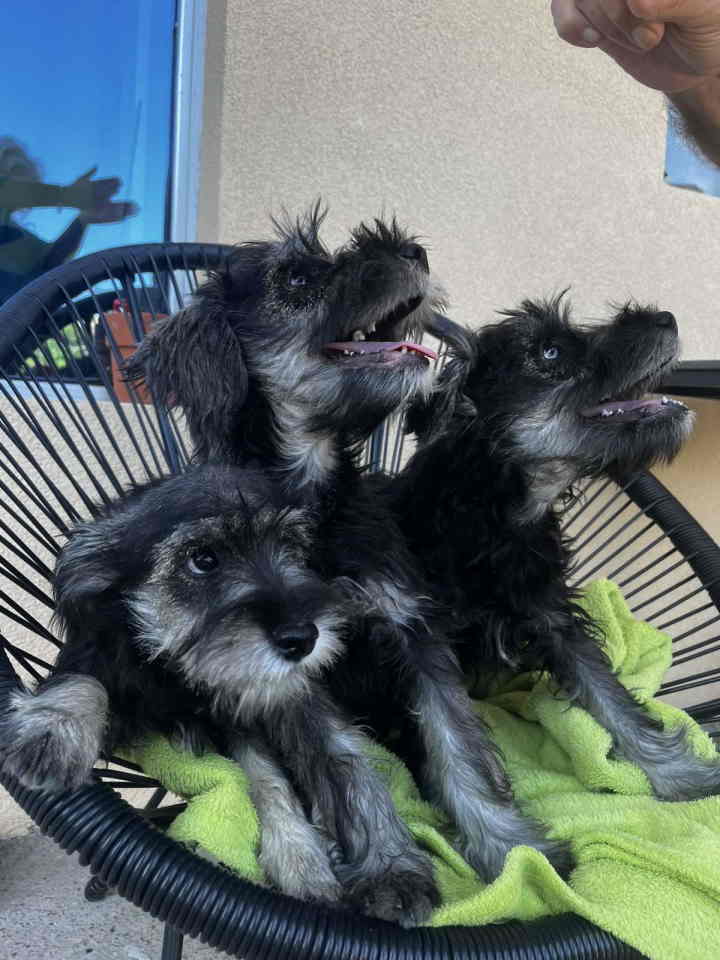 Na prodaju stenci patuljastog snaucera, crno-srebrni, bez pedigrea. Ostenjeni 21.05.2025. Ocisceni od parazita, vakcinisani i revakcinisani sa zdravstvenim kartonom. Dve zenke i jedan  muzijak spremni za preuzimanje.