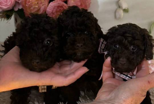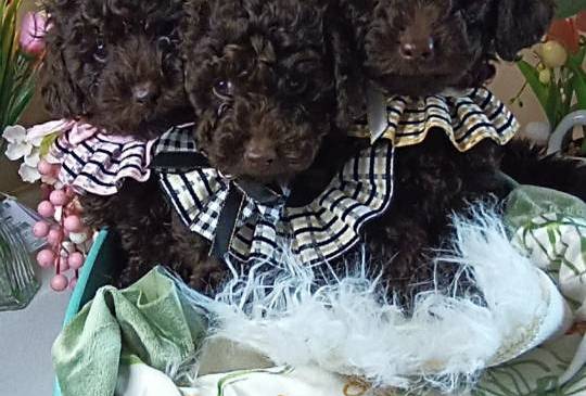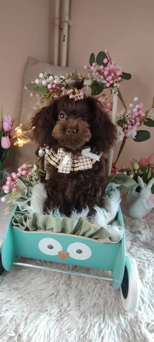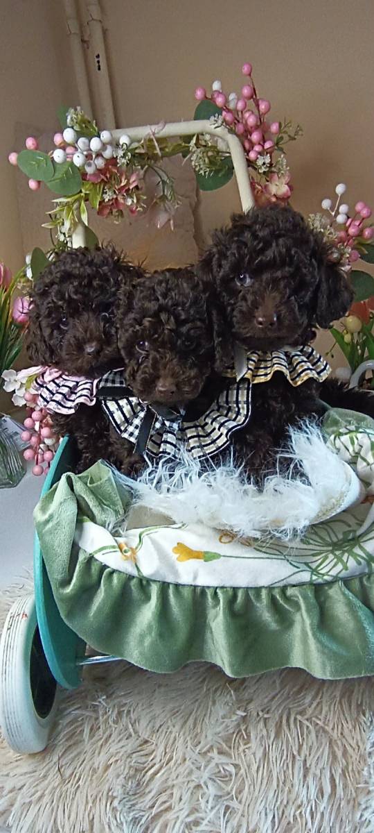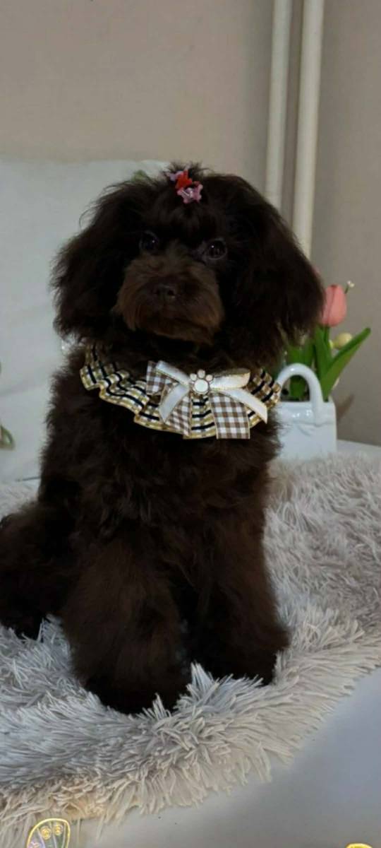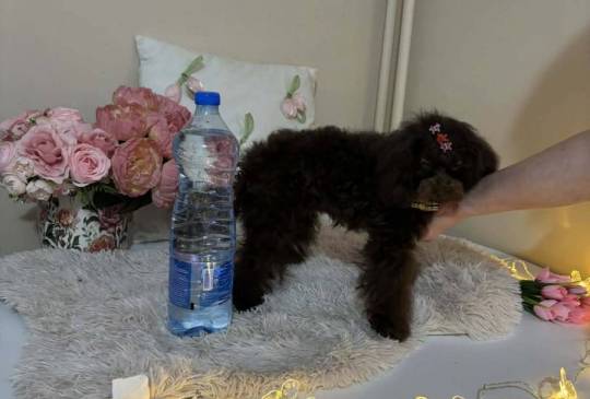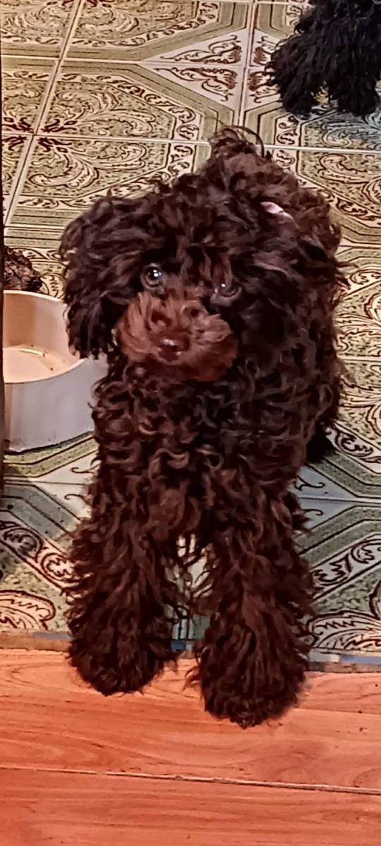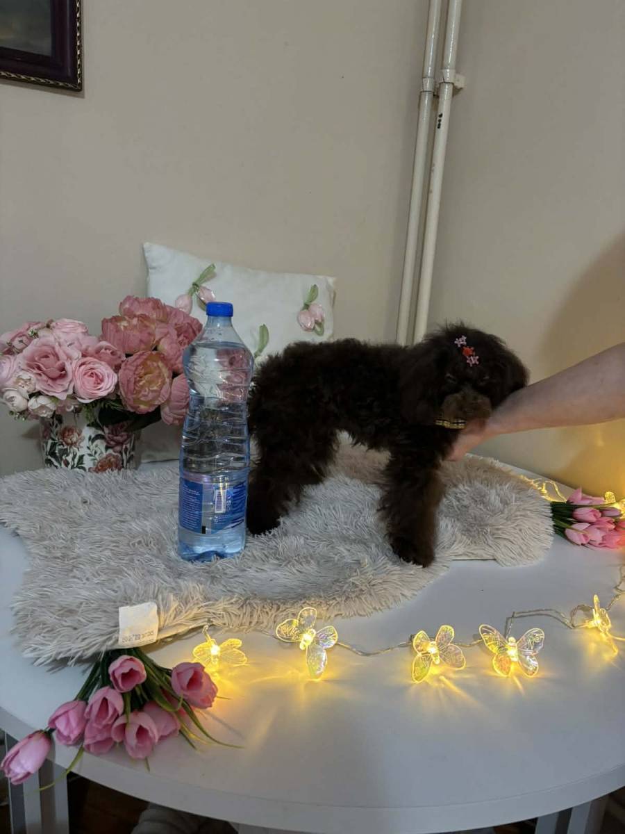 Pudla, braon ženka, od braon roditelja, starosti 6,5 meseci, završila rast, vakcinisana sa tri vakcine, naučena na decu i pse, otac toj šampionskog porekla, majka toj braon boje. Prodajem i tri ženke starosti 2,5 meseca braon boje, biće spremne za preuzimanje krajem marta, sa dve vakcine. Štenci se gaje u kući, hrane se vrhunskom hranom, naviknuti na decu i pse.