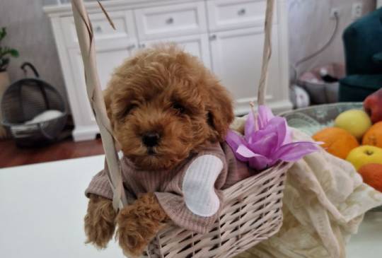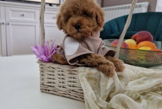 Toy pudle maleni mečići spremni za preuzimanje. Predivnih okruglih glavica, kratke njuske, malog rasta i sitne gradje. Oba roditelja u nasem vlasnistvu. Imamo bebe i u aprikot i u crvenoj boji. Od nas dobijate sve neophodno za dolazak vaseg novog clana u vas dom. Cinije za hranu i vodu, pelenice gde obavljaju nuzdu, hrana za prelazni period, omiljena igrackica malisana. Vase je da ih volite i ovaj oglas nije za nakupce. Samo za ozbiljne ljubitelje zivotinja i predivnih pudli. Moguca je i dostava uz dogovor.