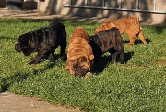 Čistokrvni Šar Pej (Shar Pei) štenci,crvena (mahagoni) i plava(siva)krvna linija, starosti 4 meseca, spremni za preuzimanje. Očišćeni od parazita, uredno vakcinisani, pod stalnim nadzorom veterinara-urađen eye taping.