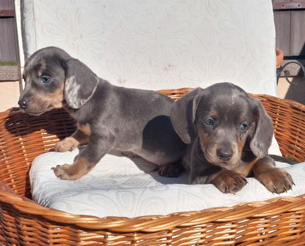 Na prodaju dugodlaki i kratkodlaki jazavičari nosioci duge dlake. Kučići su stari 7 nedelja očišćeni od parazita i jednom vakcinisani.